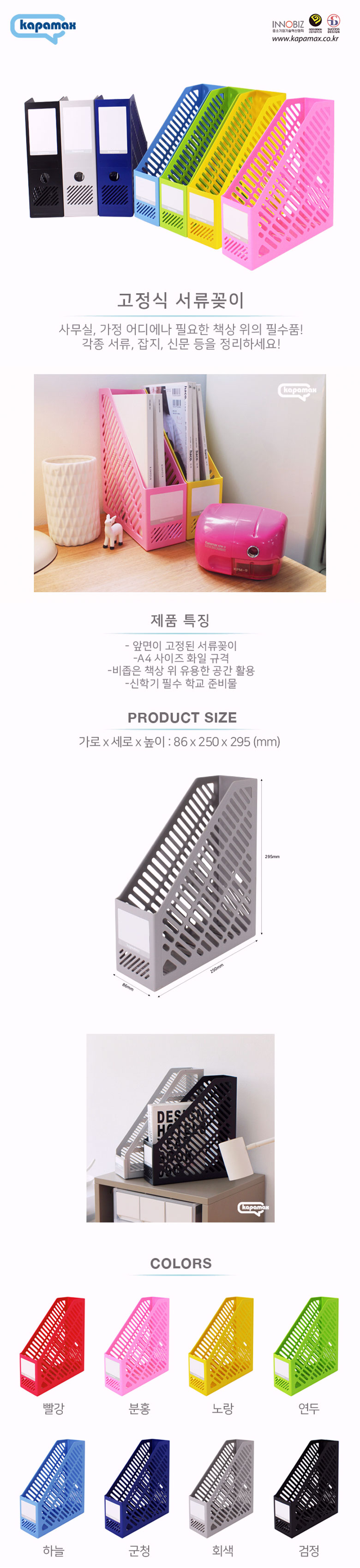 - HOME > 문구사무용품 > 서류함/책꽂이/다용도함 > 서류받침 > 카파맥스 화일박스 250 고정식 / 플라스틱 서류꽂이
