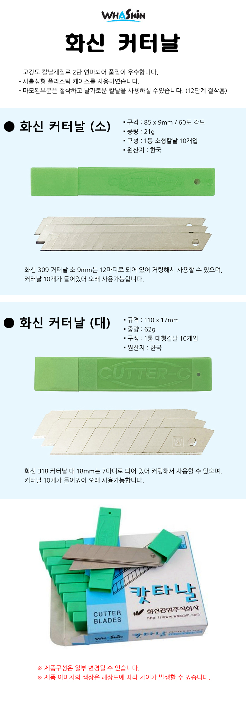 화신 커터날 (소) 1통 / 소형 커터칼날