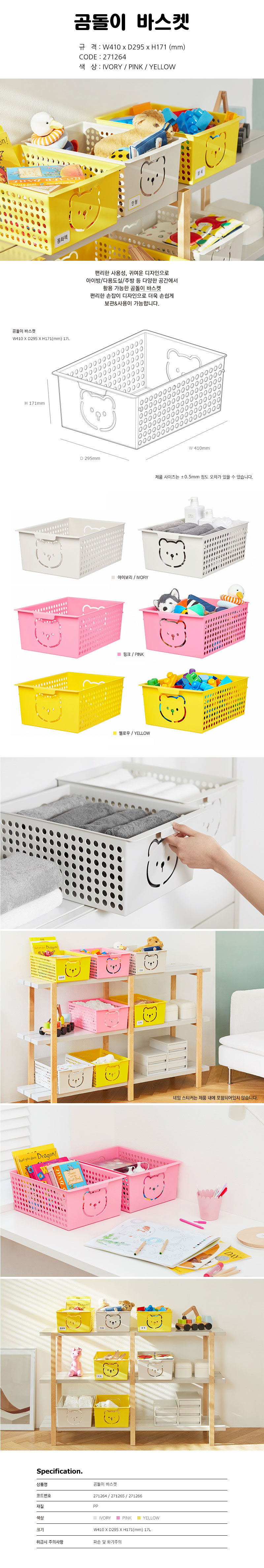 시스맥스 곰돌이 바스켓 대형 271264 / 소품바구니