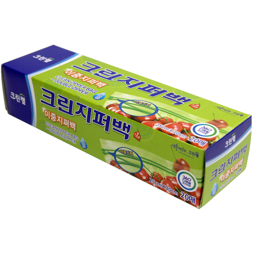 크린랩 이중지퍼백 25x30cm 20매 / 투명 PE 지퍼팩