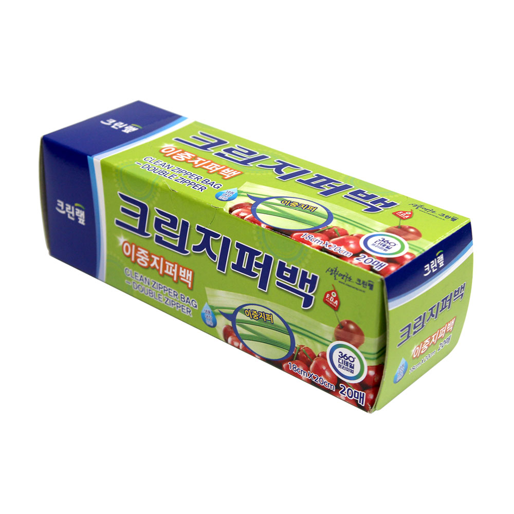 크린랩 이중지퍼백 18x20cm 20매 / 투명 PE 지퍼팩